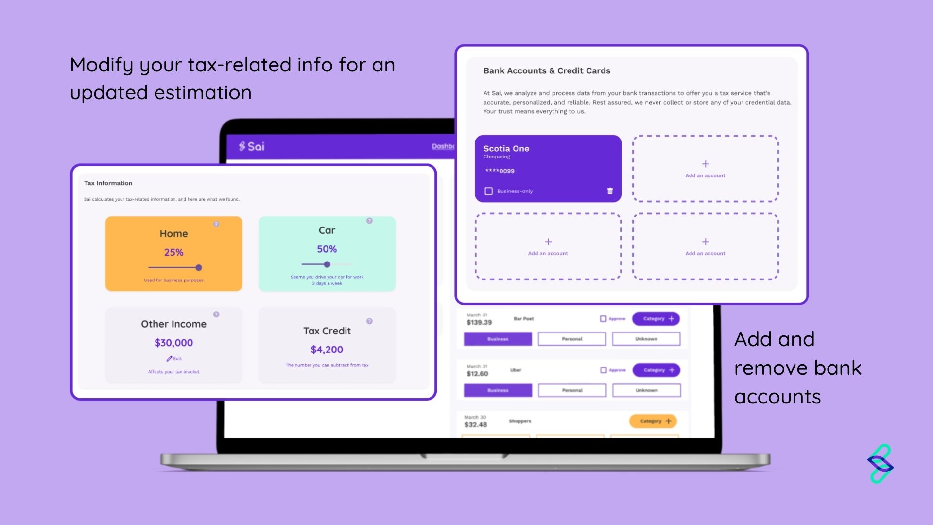 Using Sai means no more guessing or uncertainty when it comes to how much you’ll owe. Eliminate surprises with tax estimates!